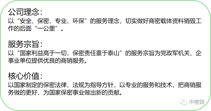 北京商銷中心位于北京市大興區(qū)舊宮工業(yè)園北西區(qū)甲7號院西院,中心配備保密銷毀車間2000余平。集:銷毀設(shè)備研發(fā)中心、銷毀技術(shù)培訓(xùn)中心、銷毀服務(wù)中心為一體,現(xiàn)有專業(yè)從事研發(fā)人員50余名、保密培訓(xùn)人員20余名、從事專業(yè)銷毀人員100余名,擁有國家標(biāo)準(zhǔn)銷毀線和專業(yè)保密技術(shù)團(tuán)隊及整體保密管理體系。中心年銷毀量;紙介質(zhì)近十萬噸、磁介質(zhì)近百萬塊,能滿足各單位銷毀需求。